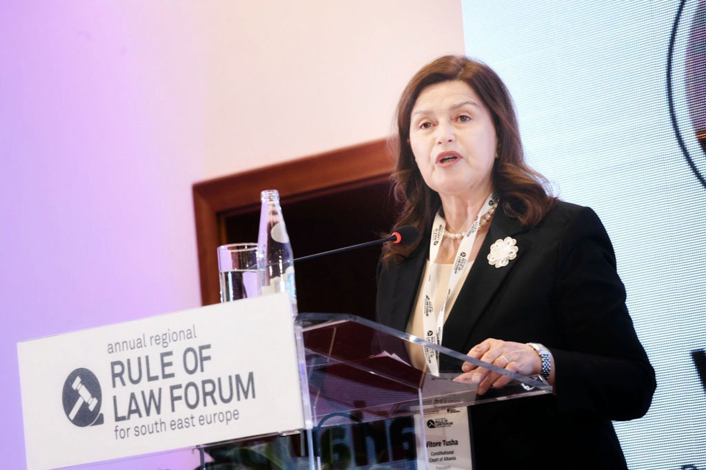 President of the Constitutional Court, Mrs. Holta Zaçaj, held a greeting speech at the opening ceremony of this important event for Albanian justice.