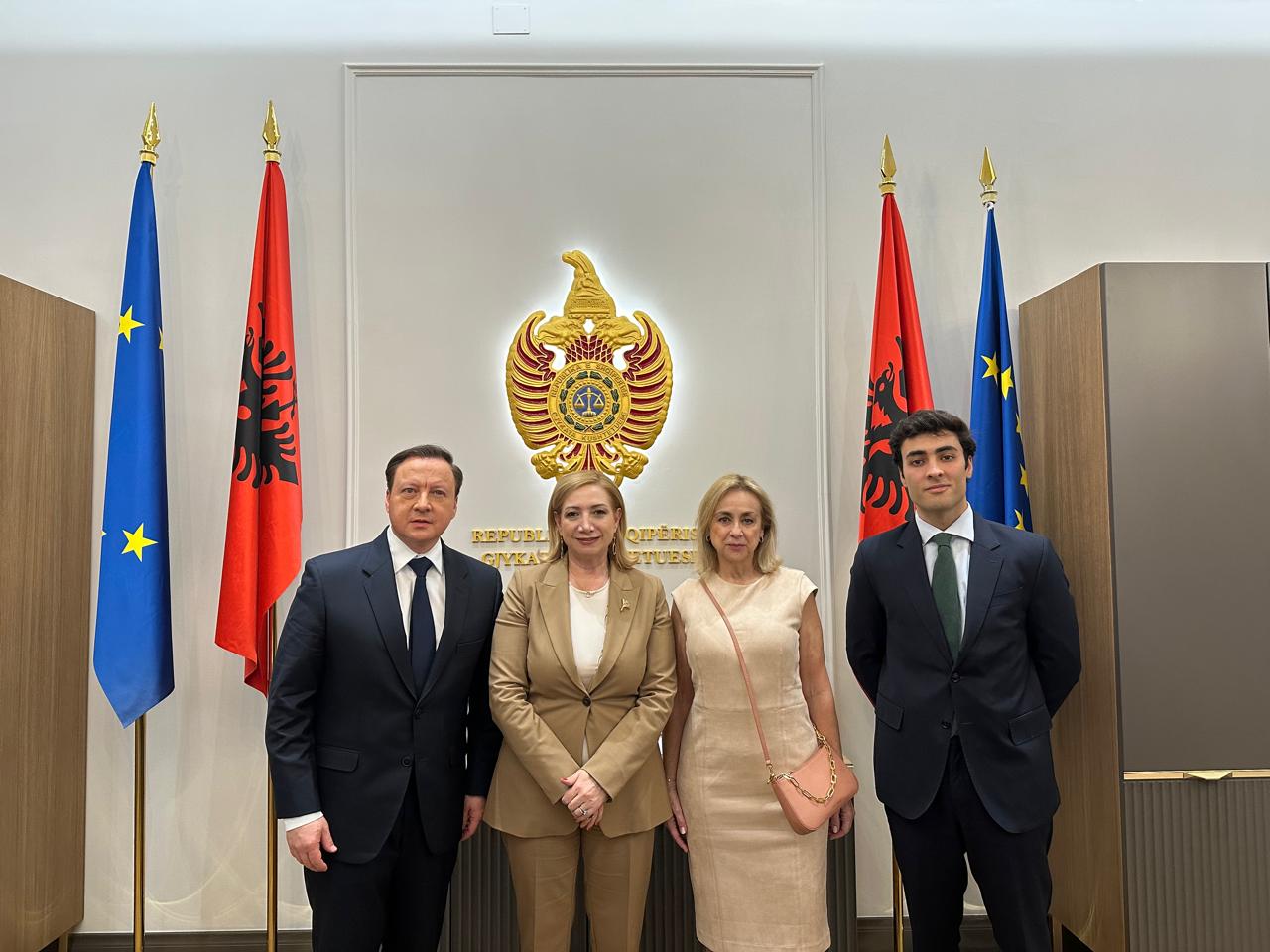 Kryetarja e Gjykatës Kushtetuese, znj. Holta Zaçaj, ka pritur sot në një takim në ambientet e kësaj gjykate një delegacion të Fondacionit Botëror të Ligjit, i cili po zhvillon në Shqipëri një vizitë disa ditore në kuadër të përgatitjeve për organizimin në Shqipëri të Kongresit Botëror të Ligjit në vitin 2027. Në takim merrnin pjesë znj. Angela Montoya, Drejtuese Ekzekutive e Fondacionit, z. Gabriel Fernández Rojas, Shef Kabineti të Presidentit të Fondacionit dhe z. Jacobo Docampo, Koordinator i Përgjithshëm i këtij Fondacioni.